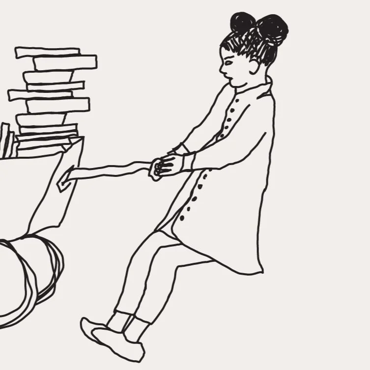 Illustration in black and white with animals and other objects